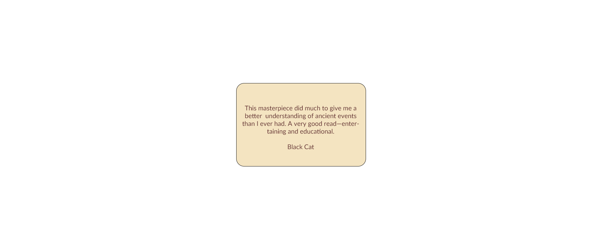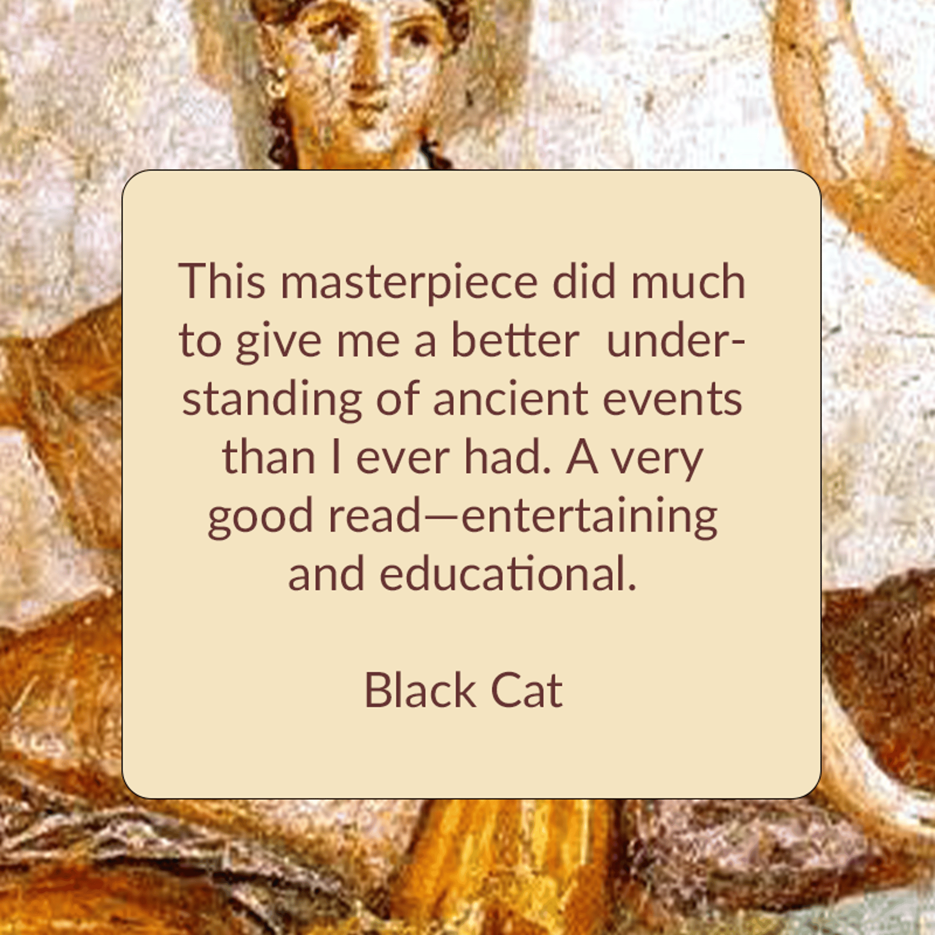 This masterpiece did much to give me a better understanding of ancient events than I ever had. A very good read—entertaining and educational.
