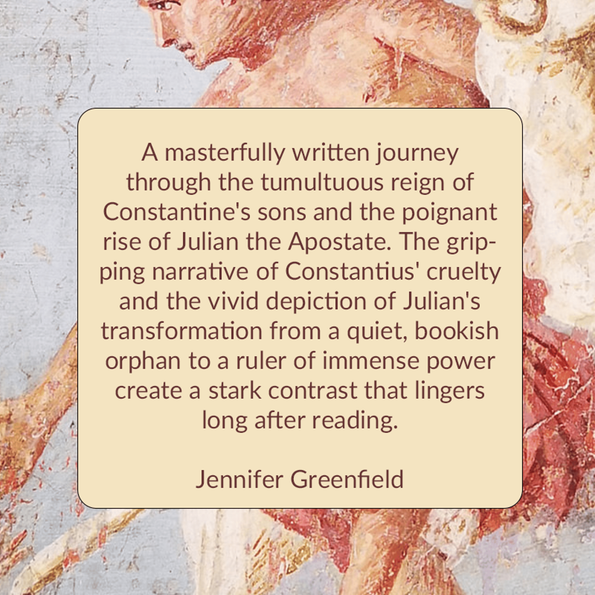 A masterfully written journey through the tumultuous reign of Constantine's sons and the poignant rise of Julian the Apostate. The gripping narrative of Constantius' cruelty and the vivid depiction of Julian's transformation from a quiet, bookish orphan to a ruler of immense power create a stark contrast that lingers long after reading.