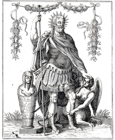 The illustrations featured in The Devil's Brood are taken from Romanorvm imperatorvm effigies: elogijs ex diuersis scriptoribus per Thomam Treteru S. Mariae Transtyberim canonicum collectis, or, Portraits of Roman Emperors: eulogies collected from various authors by Thomas Treter of St. Mary in Trastavere. Tomasz Treter was a son of a Poznań family of book binders, a philologist, translator, and poet with a clerical career in Rome and Poland (where he succeeded to a canonry once held by Copernicus). The book, published in 1583 with entirely fanciful illustrations by Giovanni Battista Cavalieri, was dedicated to Stephen Bathory, King of Poland, with a beautiful frontispiece featuring the Polish coat of arms.