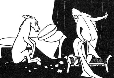 The whimsically delightful illustrations which appear in A Meeting in Oea are by Jean de Bosschère (1878-1953), a Belgian author and illustrator, who illustrated the 1925 Bodley Head limited edition of Apuleius’s Golden Asse.