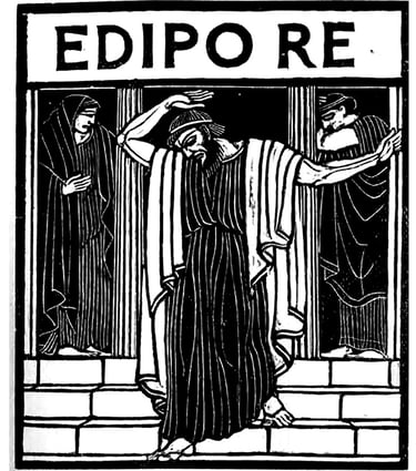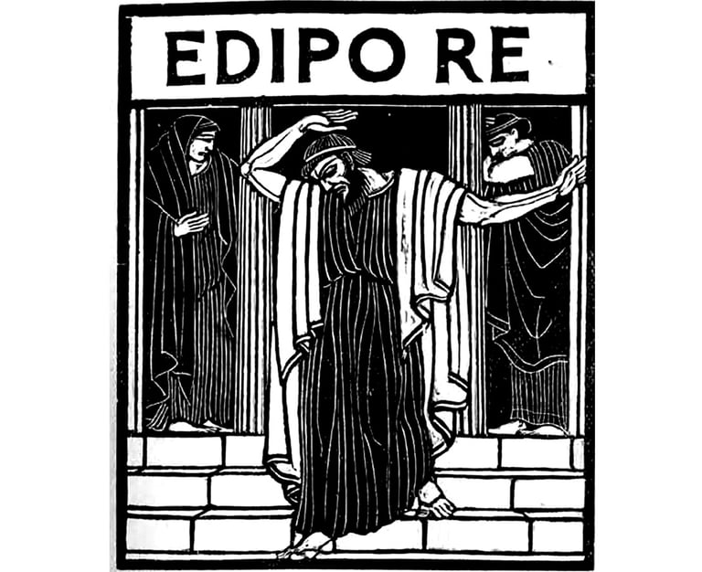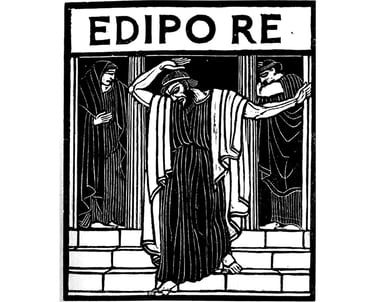 We have illustrated our edition of Seven Against Thebes with the beautiful, evocative illustrations by Adolfo de Carolis created for the 1929 Italian edition of Sophocles' tragedies, translated by Ettore Romagnoli. They showcase De Carolis's Symbolist style with rich detail and dramatic flair, typical of his renowned work for D'Annunzio and his significant murals.