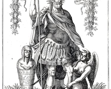 We illustrated The Last Olympiad with a series of gorgeous seventeenth-and eighteenth-century prints. This one, representing the god Serapis, is a 1791 engraving based on a seventeenth-century illustration of a work by Pierre Mussard.